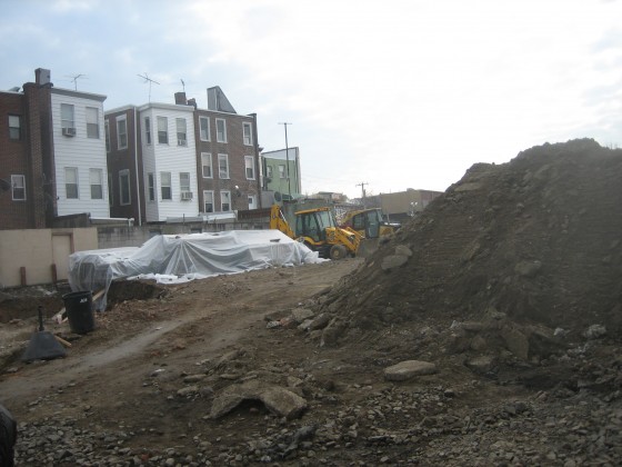 At the time, the project on the south side of the street was in the very early stages, basically moving dirt around. On the north side of the street (really the 800 block of Darien St.), a few foundations were poured, and some footers awaited additional concrete.