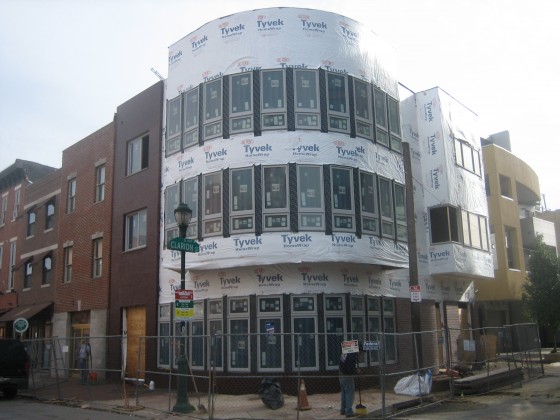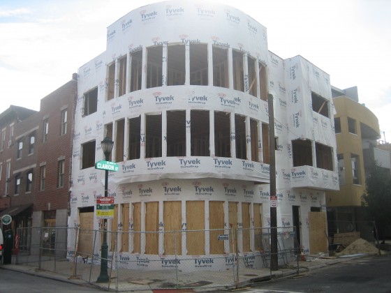 In October, we told you about 1318 South St., one of the more unique buildings we’ve seen go up recently, with round bays you just don’t see very often around town. It replaced two traditional row home structures that appear to have once held commercial spaces on their first floors. Fortunately, the developers here have maintained the commercial aspect in their new construction project. Let’s look back at the progress of this development: