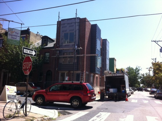 At the corner of 9th and Bainbridge Streets, just a few steps away from Chapterhouse, construction on two homes is moving along nicely. The home on the corner was a source of controversy when it was initially proposed, as it was to cover the “Autumn” mural, by David Guinn. Now, as you can see, the mural is gone for good.