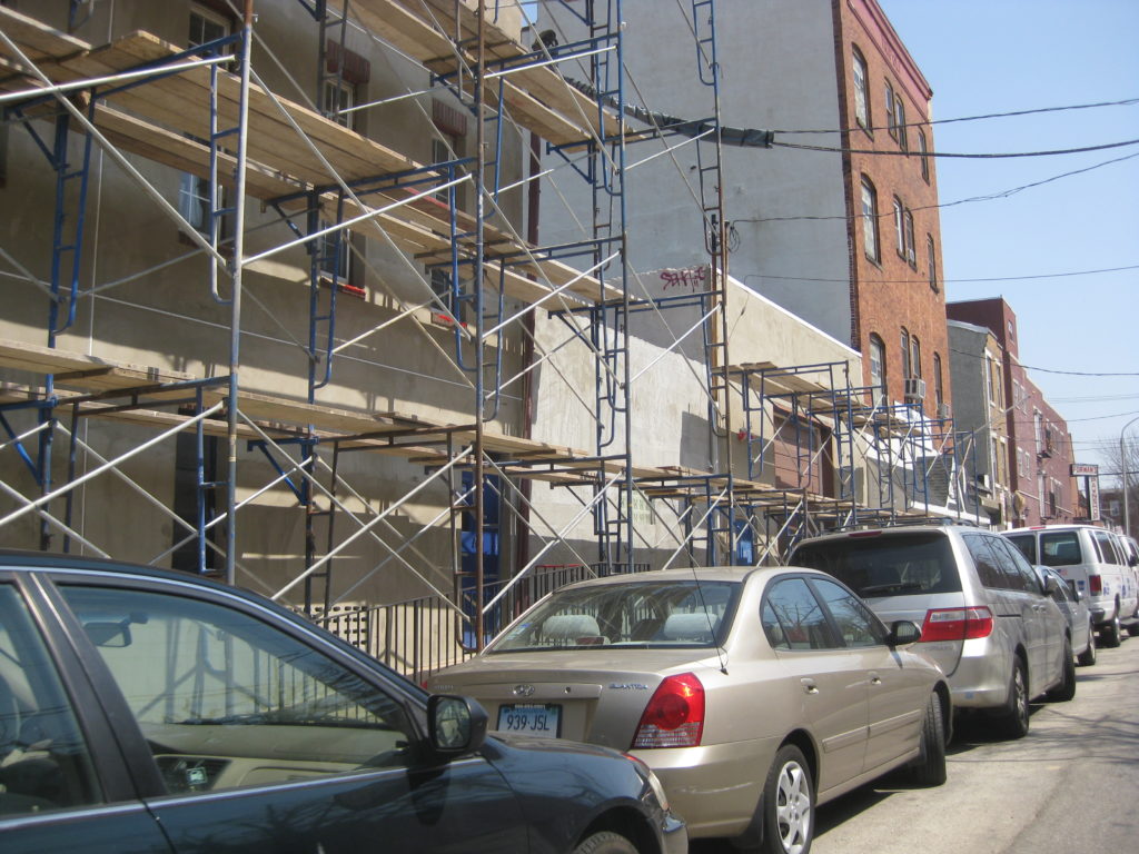 Public record indicates that one company owns all of the buildings currently undergoing exterior renovations. From what we can gather, most of the properties are used by Ready Willing and Able, a transitional program for the homeless, either as offices or for residential purposes. And a call to RWA revealed no explanation for the scaffolding, but indicated that their operations aren’t going anywhere.