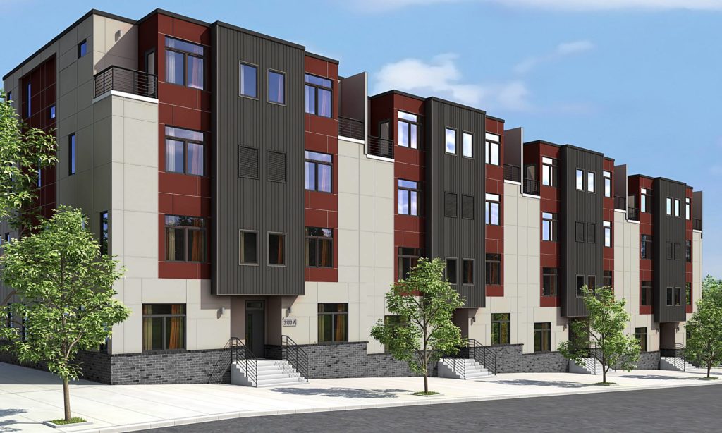 Doing a little digging, we quickly learned that the construction site is a new effort by Westrum to develop residential units in Brewerytown. Dubbed 31 Brewerytown, the project will include 2 three-story buildings, each with 32 rental apartment units. The units will start at $1,200/month, but will have high end features and finishes like granite countertops, stainless appliances, washer/dryer, and keyless entry (like a car!). Many of the units will have balcony space. Parking will also be available for some tenants, with private garages available for another $75/month. Check out the renderings:
