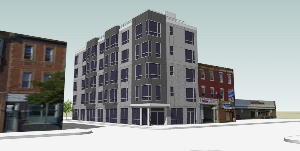 Disappointed to see these handsome buildings demolished, we reached out to MM Partners to get the scoop. We learned that the change of plans stemmed from structural problems with the buildings that were discovered as they were doing interior demolition in preparation for a renovation. In addition, Stollenwerk is no longer attached to this project. Now, the developers have plans for a new five-story mixed-use building which will look something like this: