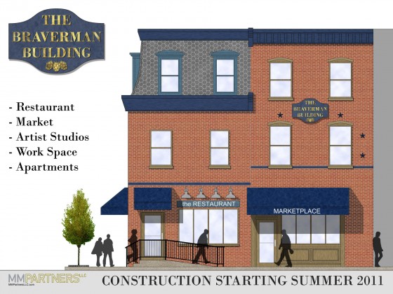 MM Partners has titled the project The Braverman Building, naming it after the hardware store and bakery that once occupied the premises. Along with the market and restaurant, there will also be six apartments, along with artist studios and additional work space. The expected time for completion for the first floor is the end of the year or beginning of 2012, and the apartments should be ready a few months after that. Taking a look at what the building looked like a few months ago and even what it looks like today, this will certainly be a tremendous task.