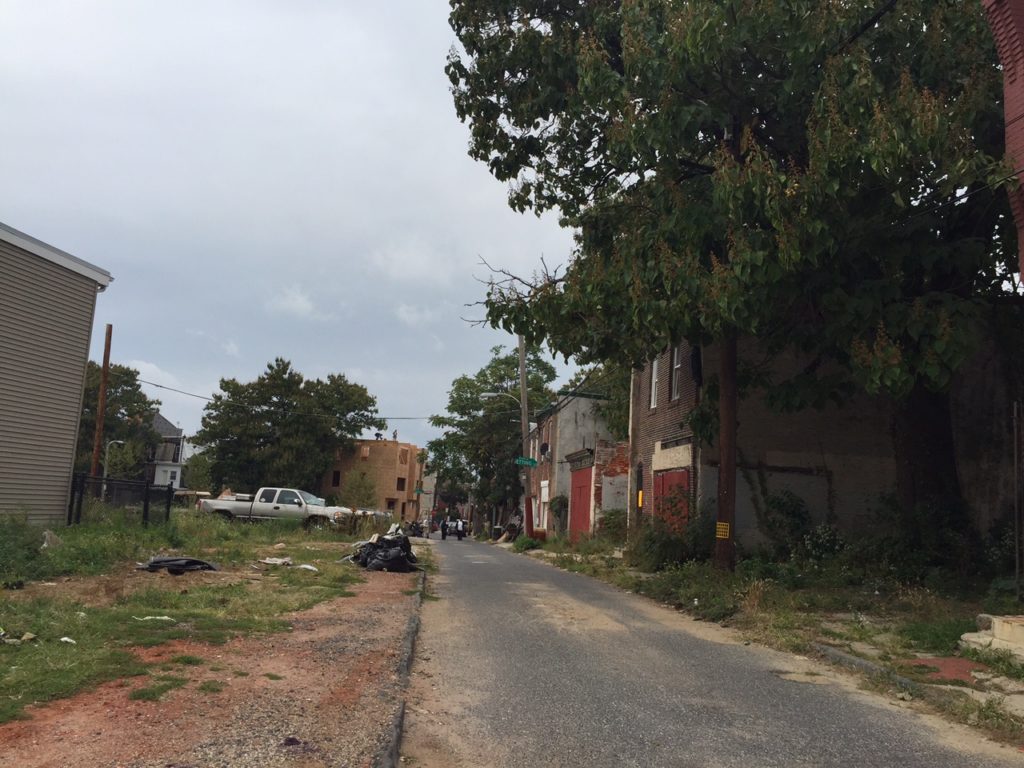 When we stopped to snap some photos and get a closer look, we realized that the address is actually 2712 W. Cabot St. even though the building frontage is on Stiles and it's just a vacant lot on Cabot Street. Cabot Street's in better shape than Stiles Street, but it also (sarcastically) boasts a number of vacant lots.