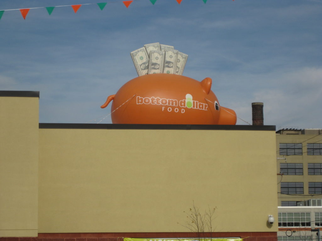 In November of 2012, the opening of the Bottom Dollar Foods near 31st & Girard was chock full of excitement, pomp, circumstance, optimism, and plenty of other good feelings, even though the look of the project was about a hundred steps short of the original conceptual drawings. So yeah, the building looks awful like the suburbs, but we were still very pleased to see the supermarket open its doors, eliminating a persistent food desert in Philadelphia. And aesthetics aside, we were really sorry to see the market close its doors at the end of last year when Aldi bought out the Bottom Dollar chain.