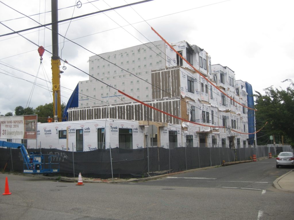 In case you don't remember the details of the project, it will feature four-story buildings with a total of sixty-four rental apartments. The units will start at $1,200/month and will have high end features and finishes. Many of the units will have balcony space, and parking will be available for some tenants as well. Check out the look of the project: