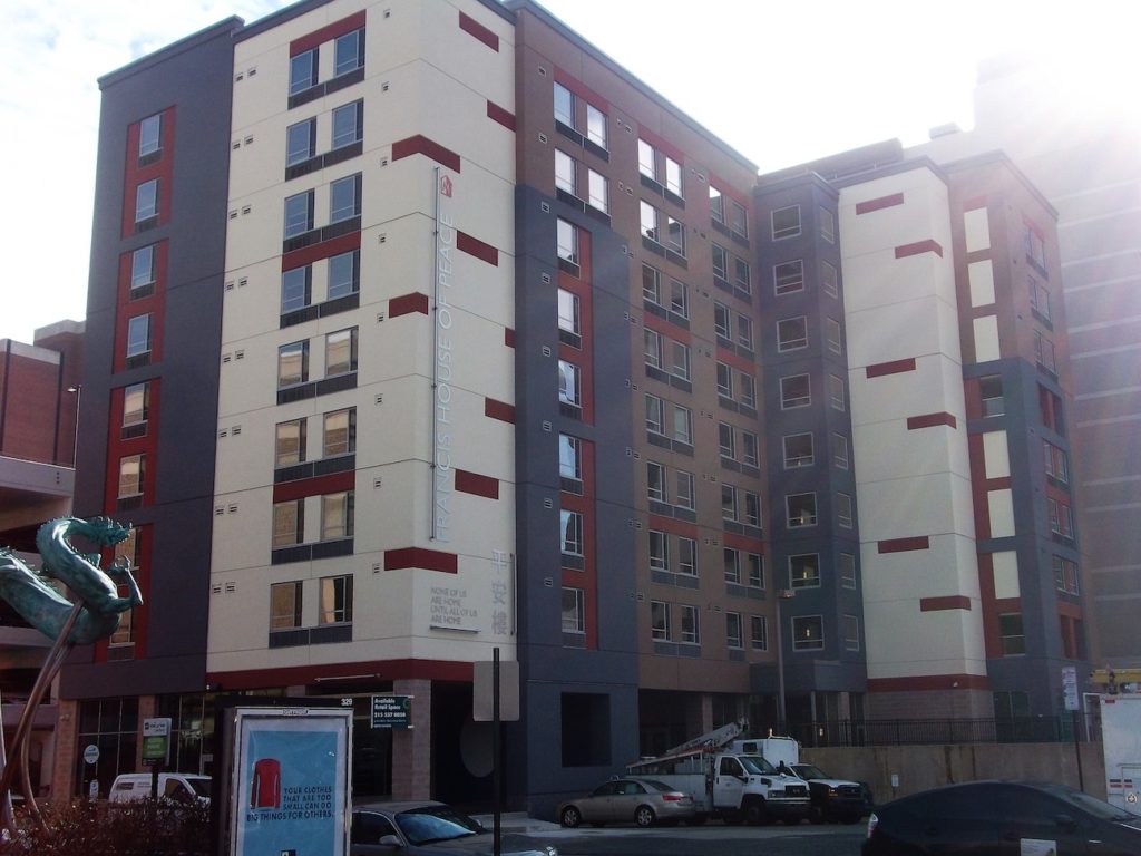 While we were in the area, it seemed like a great time to check in on a large Project HOME development just a block east at 810 Arch St., the Francis House of Peace. As you may have guessed, the building is being named in honor of the Pope Francis' visit to Philadelphia. The building contains 94 apartment units which, like all of the Project HOME developments to date, will be dedicated to low-income and/or formerly homeless residents. It also has a small retail segment at the bottom of the building. From the looks of the outside, it definitely seems finished.