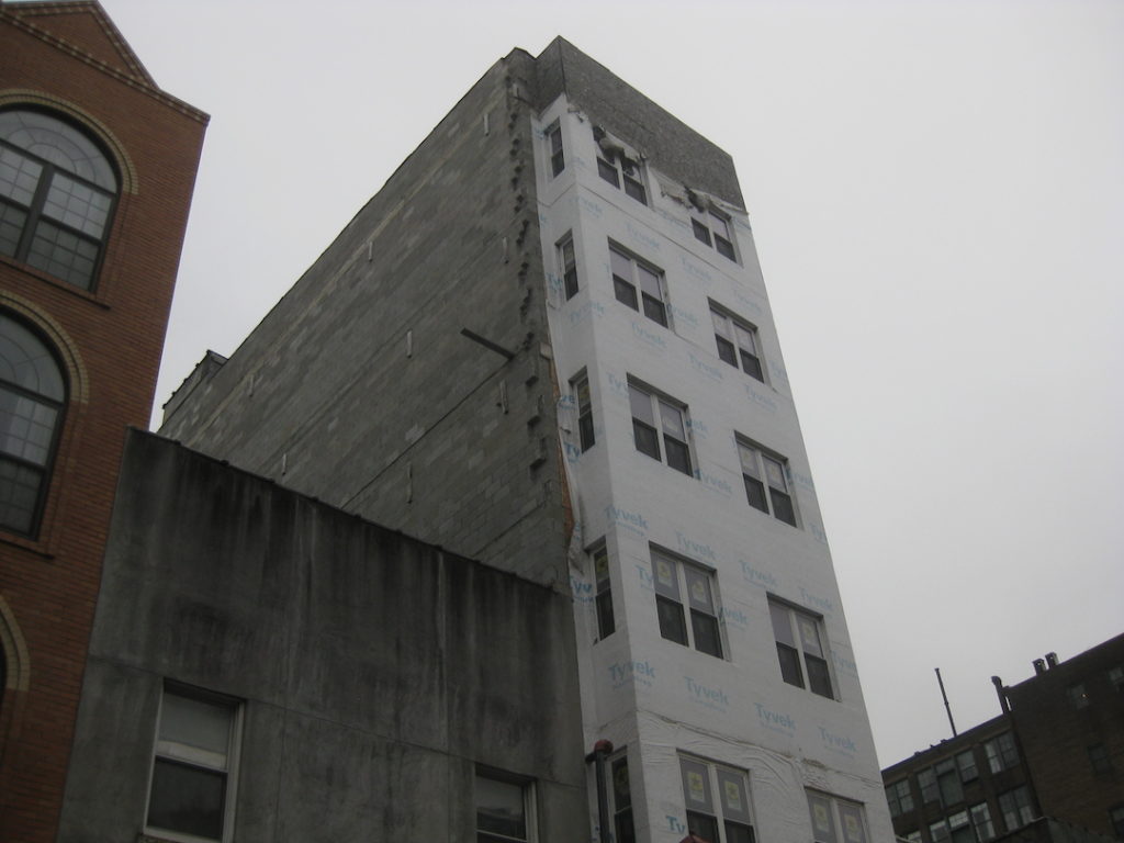 When the property owners went to the ZBA back in 2011, they got permission for a six-story addition, with twenty apartments on the upper floors, office space on the second floor, and commercial space on the first. Seems like an innocuous enough project, no? But something is amiss here and we can't quite put our finger on it. Prior to their presenting to the ZBA, the owners got a boatload of violations which have all been cleared. Perhaps those violations led to the project going before the ZBA in the first place. Soon after getting approvals, the addition went up and by the time we wrote about it way back when, the construction seemed to be moving along at an appropriate pace. But something has happened in the two and a half years since. Well, scratch that. Actually nothing has happened, at least from what we can tell.