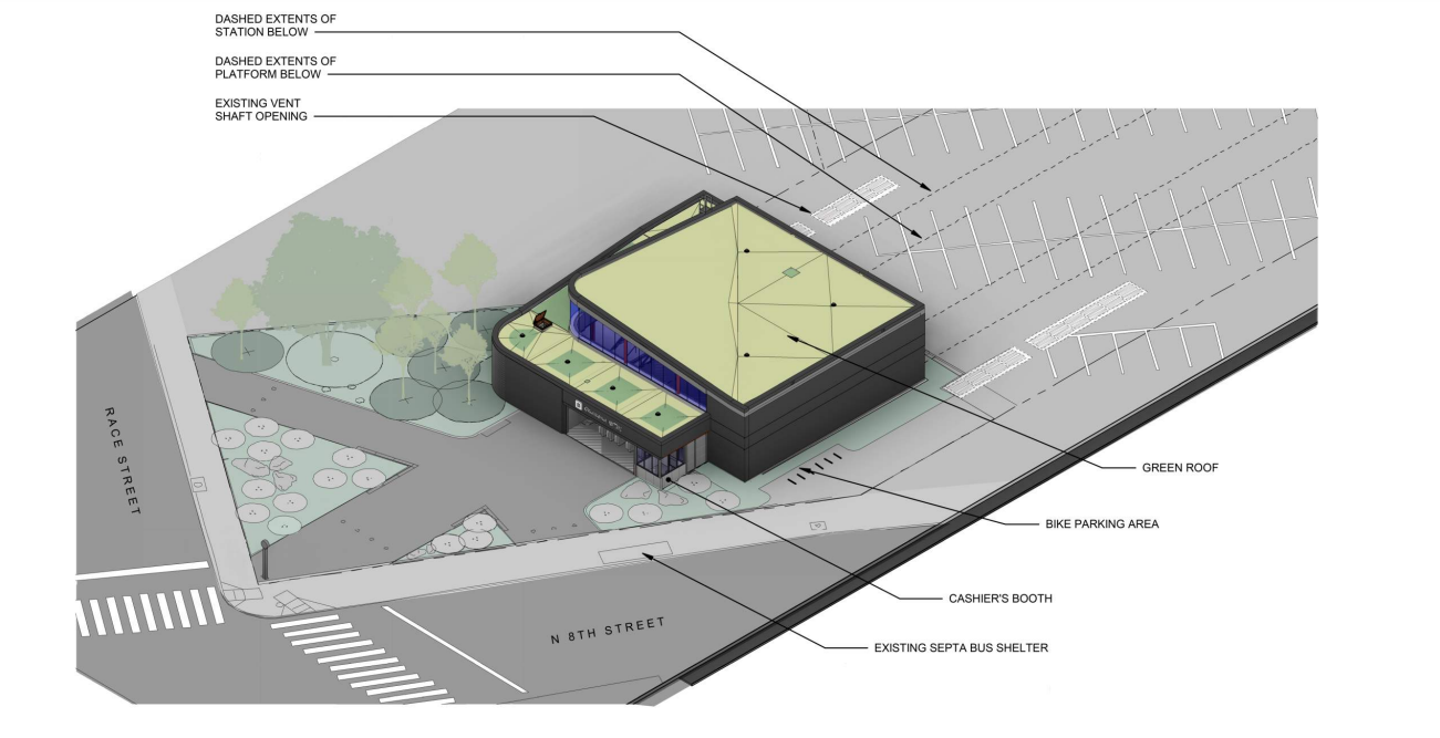 Before the state agency can proceed with the necessary improvements, they need the City’s Art Commission to sign off on the plans. After securing conceptual approval for the project last July, the agency and its outside engineers presented their modestly revised plans for final approval for the redevelopment of the subway station at 800 Race St. on Wednesday morning. The Art Commission gave their approval and SEPTA can now proceed with the project, though they’ll need to come back in the future for approval for signage.