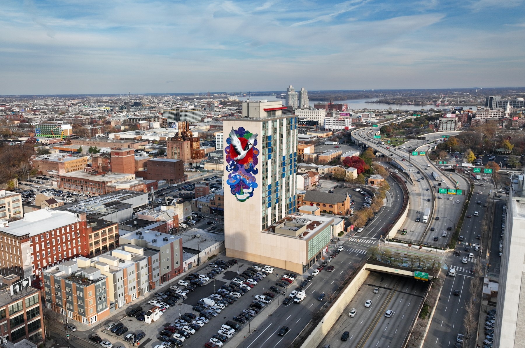 This is an absolutely amazing addition to the long list of murals in the city. The blank wall was begging for something striking, and this huge piece of artwork certainly achieves that, while also creating a new sense of place for the area.