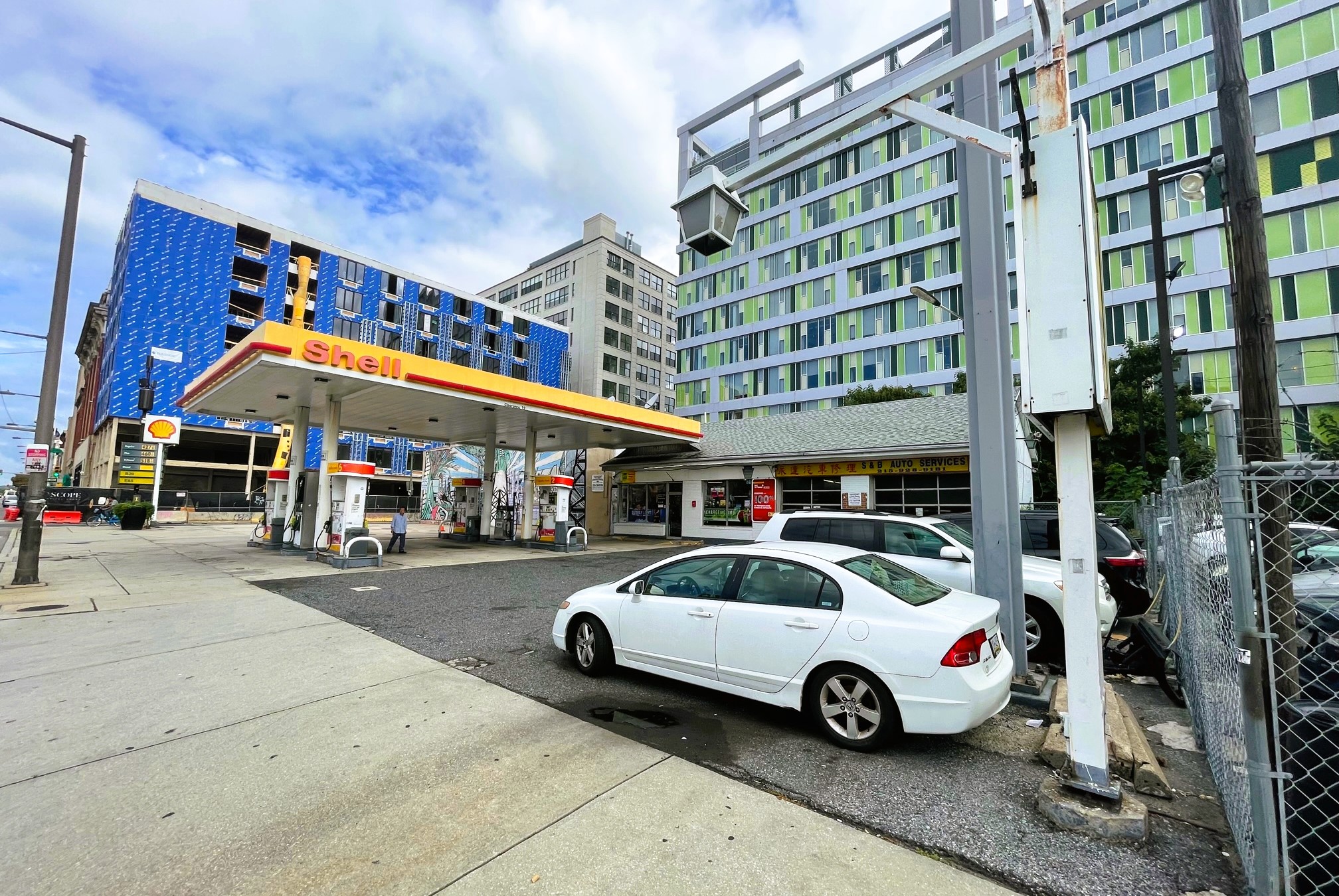 While taking our mind off of the latest Sixers drama (and we aren’t even talking about the arena!), we decided to peruse the recent commercial real estate listings. You know, perfectly normal stuff. Seeing an interactive real estate map always modulates our heart rate after getting riled up as the prime of the reigning MVP’s career is once again thrown into turmoil. Again, we are normal over here. Ahem, so you can imagine our excitement when we came across a listing for 1125-45 Vine St., currently surface parking and a gas station/service center on the NE corner of 12th & Vine. Let’s make like the Flight Brothers and get a rim’s-eye look at the site.