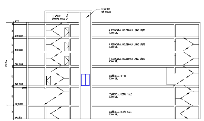 The new building will have retail on the first floor and in the basement, with commercial/office space on the 2nd floor, and 12 residential units on the top 3 levels. It’s perhaps a little unexpected to see the commercial use on the 2nd floor, as we would generally expect to see maximum residential density in a project of this size. Perhaps the owners already have a tenant in mind and they’re building to suit. Also, we’d be curious to know whether the businesses that were previously located here might be making a comeback in the new building.