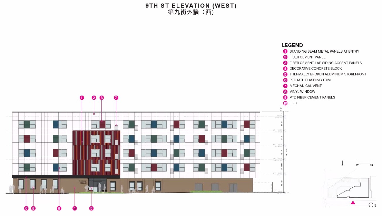 We knew to expect a five-story, 51-unit project on the northwest portion of the site, but we knew little else of what was in store. Thanks to a recent zoning meeting from the Philadelphia Chinatown Development Corporation, we now have details and renderings for what we can expect here in the coming years. Pennrose, a regional affordable housing developer, has brought on WRT Design to bring the area a contemporary triangular building. This shape is necessary due to the easement on the site as a result of the Broad-Ridge Spur, which cuts diagonally underneath. A community room will be featured on the first floor of the site, which will lead out onto a small, landscaped plaza. Surface parking for 11 cars (including two spaces earmarked to a nearby project) will serve the residents. These will be income restricted units designated specifically for older residents, forming a big benefit to the nearby Chinatown community to which it will cater.