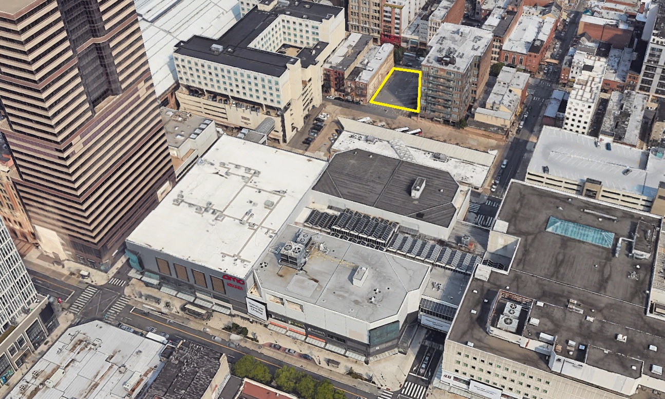 For all of the excitement and controversy around the proposed 76 Place plans, there are still properties in the immediate vicinity that are underutilized, no matter where you stand on the viability of a Sixers arena in Center City. One such property is 1018-24 Arch St., which we visited early last year when we heard that the former bus parking/turnaround location was chained off. Since that visit, when we speculated that an apartment tower or hotel might be on the docket, this lot has grown even more appealing from a development standpoint given the big arena plans literally across Cuthbert Street to the south.