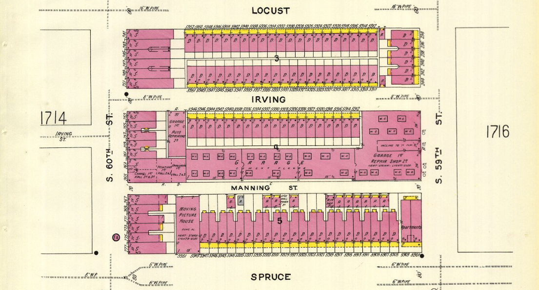 But the needs of a neighborhood can change over time. Over the last decade, we’ve seen countless examples of old auto shops and gas stations getting replaced by new projects. We’ll likely see it play out again at 246-52 S 59th St., which was home to Al’s Auto Shop for many years. This auto garage had most of its frontage on 59th Street, with a continuation along Manning Street, consistent with the 1925 map above. At some point in the last half decade, the main garage building on 59th Street was demoed, but most of the garage space along Manning remained.