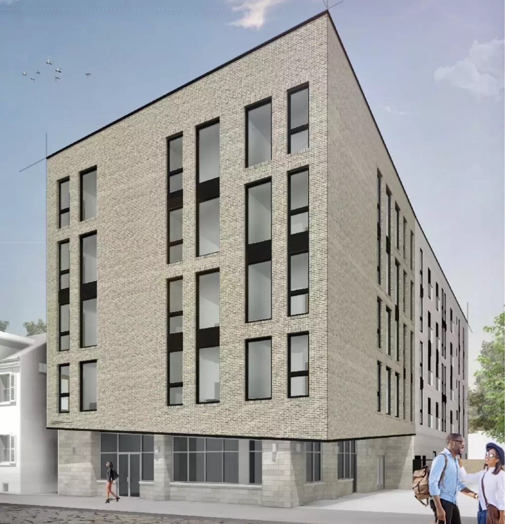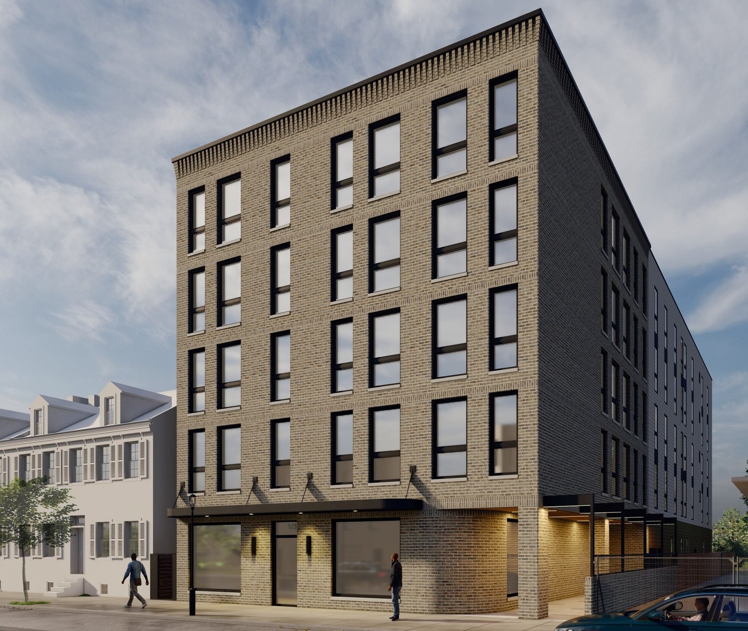 5230 Germantown Ave. is currently a somewhat sad empty property, though it sits directly next to its historically protected neighbor: The John Bechtel House, which was built back in 1742 (!) and was home to the famous writer in the 18th century. Olympia Holdings are the developers here, with KJO Architecture leading the design of a 40-unit, mixed-use proposal. After an initial angular design was pitched, neighborhood feedback led to a shift in approach, with the new plans featuring a more traditional look, set off by the curved entryway along the front of the structure. The developers utilized a green roof bonus to bump up the density, adding an additional eight units to this CMX-2.5 zoned property. There is no car parking included, but 14 bicycle spaces will join a commercial space along the ground floor, according to zoning records.
