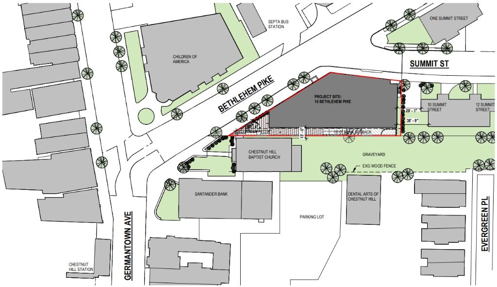 Chestnut Hill is undeniably charming and adorable, sporting some of the most picturesque streets in the entire city. The historic architecture, cobblestones and mature trees can give the impression of a neighborhood frozen in time. And for one former gas station, the neighbors are wishing they could turn back the clock. The property at 10 Bethlehem Pike, just north of Germantown Ave., is currently in the midst of a prolonged disagreement about what the future holds for this trapezoidal lot.