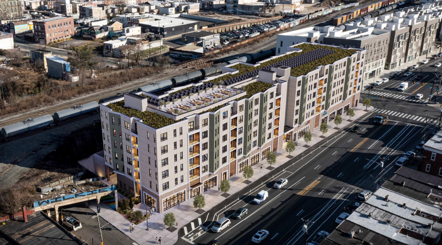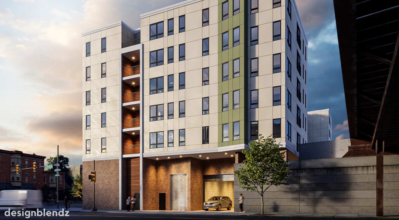 With a recent East Kensington Neighborhood Association meeting complete and an upcoming trip to the Civic Design Review ahead in September, we can now tell you all about the mixed-use plans for the property. Taking up the entire property between Frankford Ave., Lehigh Ave., Emerald St. to the west and the rail tracks to the north, we can expect a six-story, 157-unit apartment building to rise here. 59 below-grade parking spaces will be topped by two ground floor commercial spaces, both in the 4K sqft range. The look is somewhat muted and contemporary, with a green roof topping off the mid-rise structure. In perhaps the biggest design feature, there will be a cut-away at the back of the building, seemingly allowing for a connection to the rail bridge and a potential future trail.