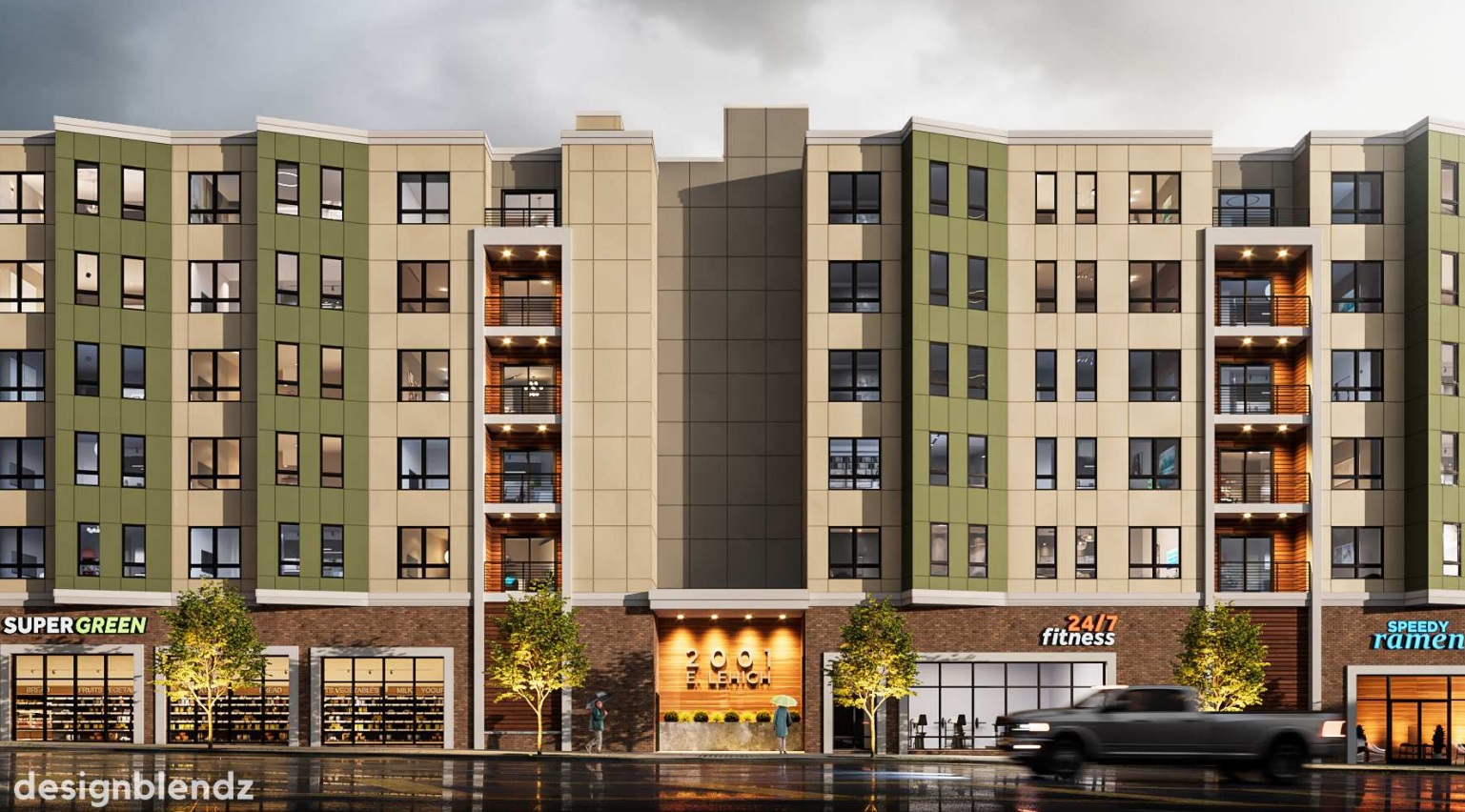 Along Lehigh Ave., the Penn Reading’s 21 units are finishing up close by. Just to the east of that, the Pump House will add yet another 278 partments across its multiple buildings. Along Frankford Ave., the Coral House is underway, bringing 41 more units to this suddenly busy intersection. And in what would be the biggest addition to the area, 454 units are planned in the large Woods Brothers lot just steps to the south.