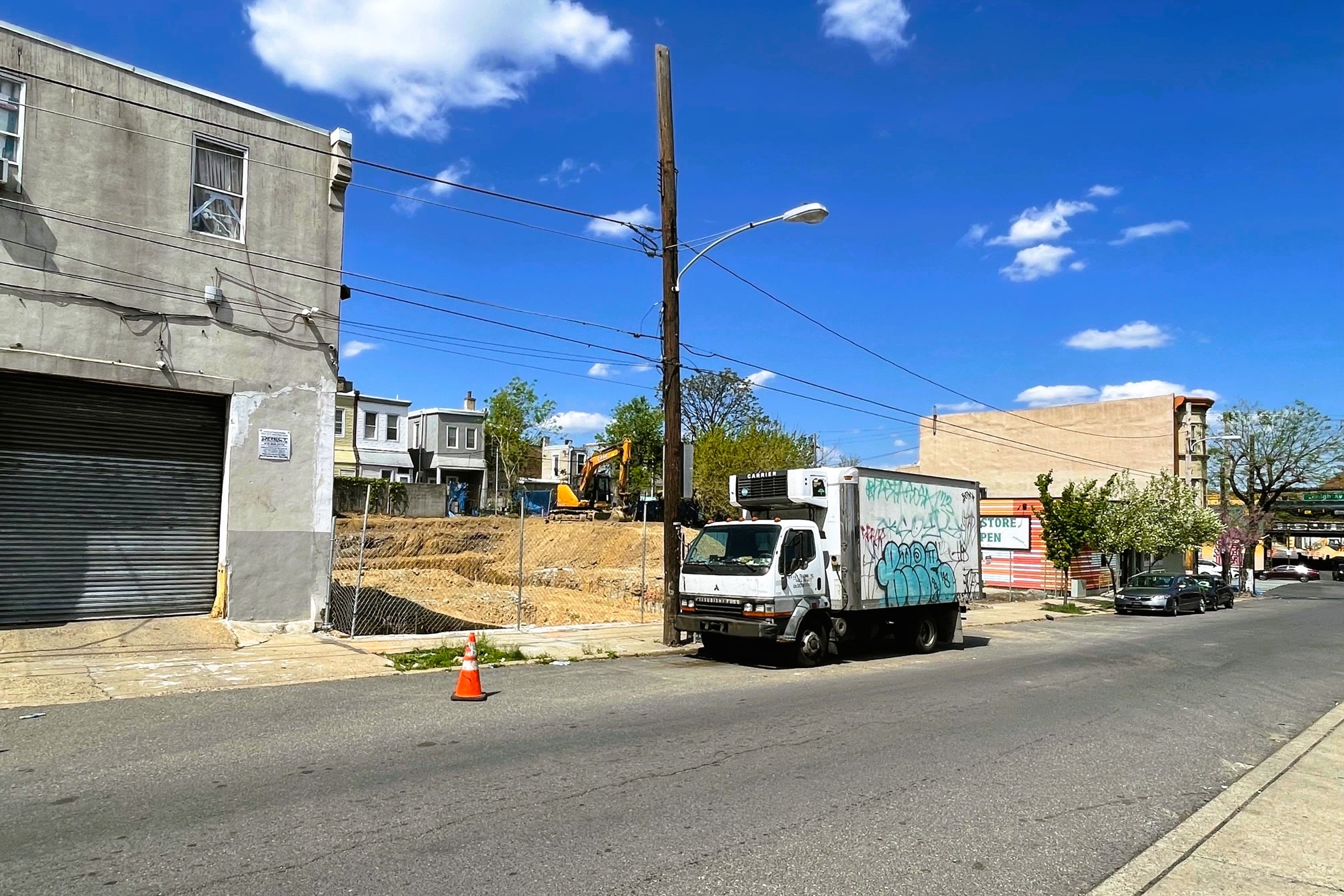 As this project continues to move forward, we can see other proposals at various stages close by. To the east, another project we recently visited is wrapping up on the other side of the gas station across the street. The Penn Reading, from Philly Capital Group and Ambit Architecture, will add another 21 units and more commercial space to the north end of East Kensington.
