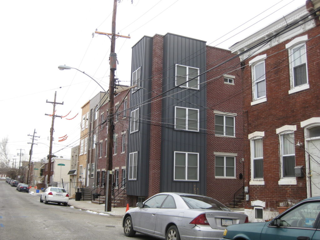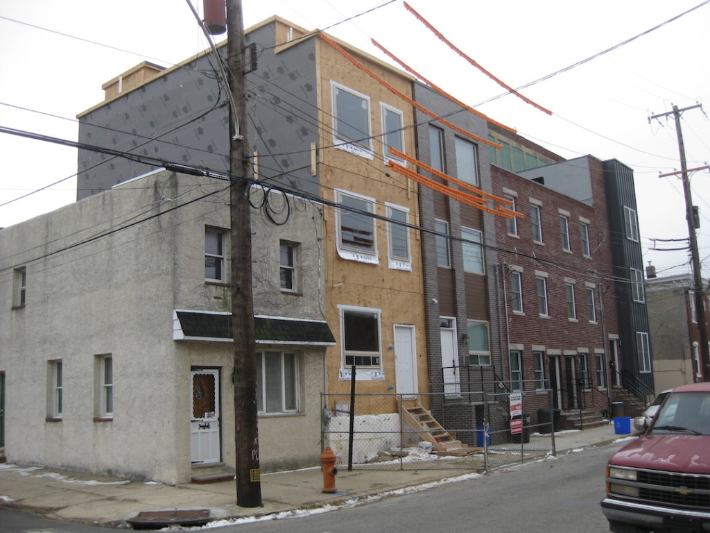 The home on the corner is all that remains from the previous photo. Next door, at 2615 Martha St., a single family home is under construction. Next to that is another home that was recently built and sold. Moving further down the block are three homes that we think are rentals, owned by the Fishtown Redevelopment Authority. Guessing they're not affiliated with the PRA?