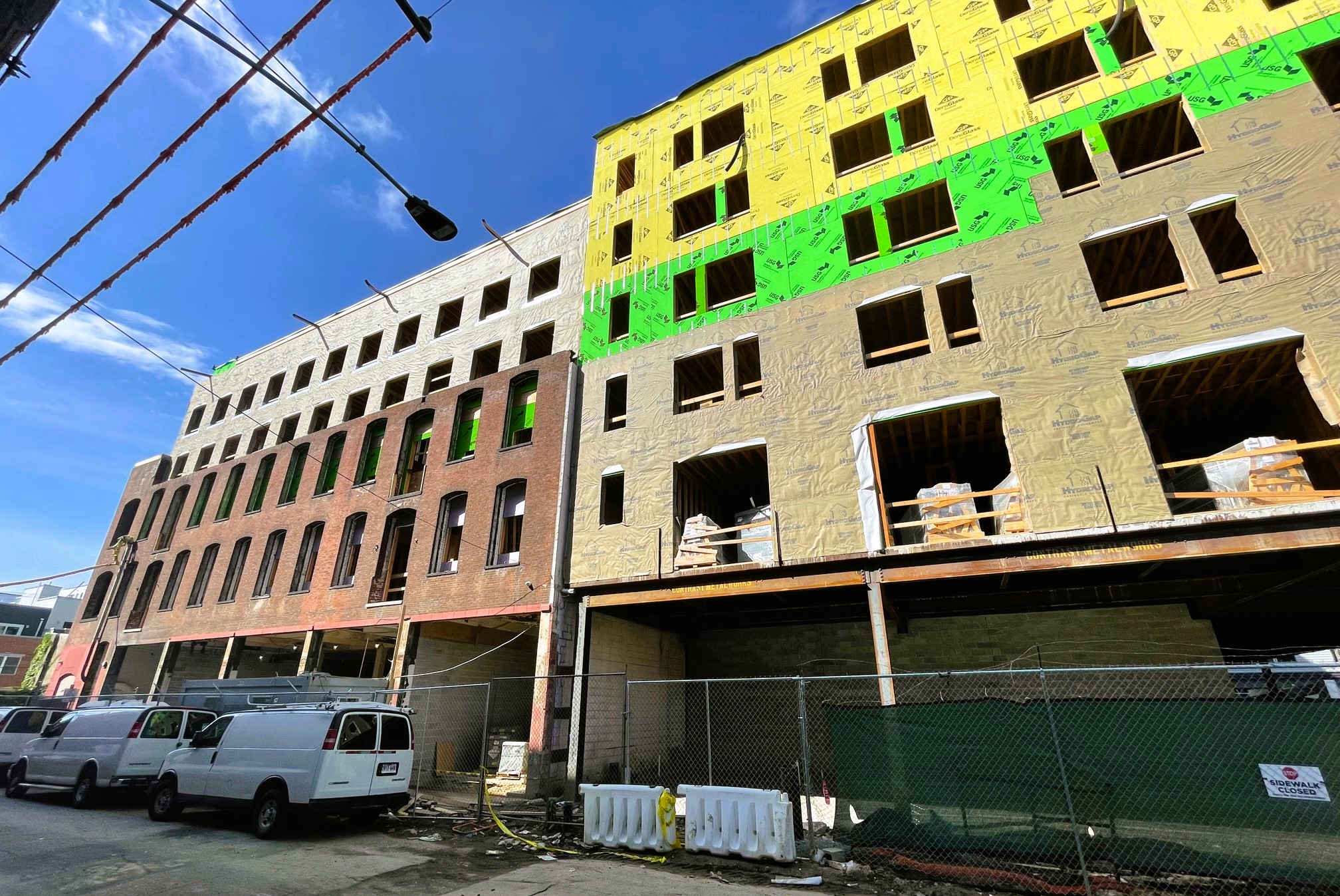 Finally, at the northern end of our journey is 1810 E. Hagert St., also known as the former home to Comly Auctioneers. This project is the adaptive reuse of the group, as the former Comly building is receiving an overbuild and an addition. This one is also well underway, featuring a design from SgRA that includes more studio space and 139 apartment units on the upper floors. We told you about this project back in April 2021, and we are pleased to see plenty of work happening now on-site.