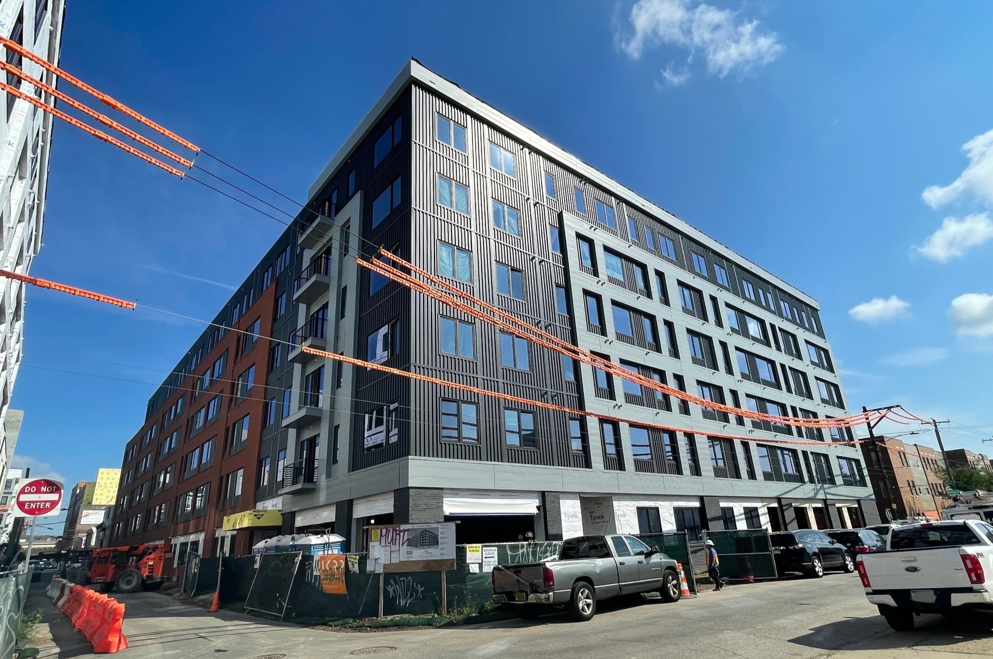 Finally, at the northern end of our journey is 1810 E. Hagert St., also known as the former home to Comly Auctioneers. This project is the adaptive reuse of the group, as the former Comly building is receiving an overbuild and an addition. This one is also well underway, featuring a design from SgRA that includes more studio space and 139 apartment units on the upper floors. We told you about this project back in April 2021, and we are pleased to see plenty of work happening now on-site.