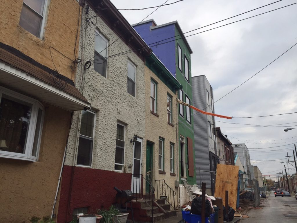 As East Kensington continues to see development on through streets like Amber and Coral, the side streets are also getting in on the act. We were meandering around the neighborhood last week and noticed some action on E. Letterly Street between Amber and Coral. A new home at 2084 E. Letterly St. was the first thing that caught our attention, perhaps because of the vinyl siding that's visible from Amber Street. The fact that it looms a bit over the neighboring homes may have also had something to do with it, good thing for that third floor setback! </sarcasm>