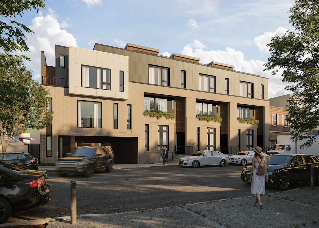 Given the way the neighborhood has changed, it made all kinds of sense that the industrial building got torn down. But when we wrote our story, we didn’t know what would be coming in its place. We suggested that the 12K sqft property could accommodate a new mixed-use building with some height, density, and ground floor retail, but we noted that the property was zoned for single-family use and such a project would require a variance. A 9-10 home development was possible as a matter of right, but we figured the developers would at least try for a variance. Alas, we were mistaken.
