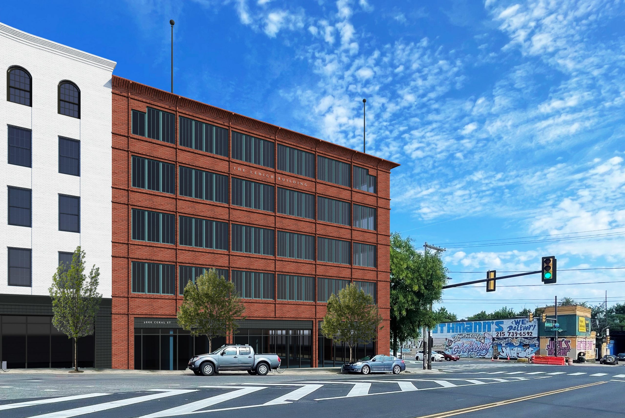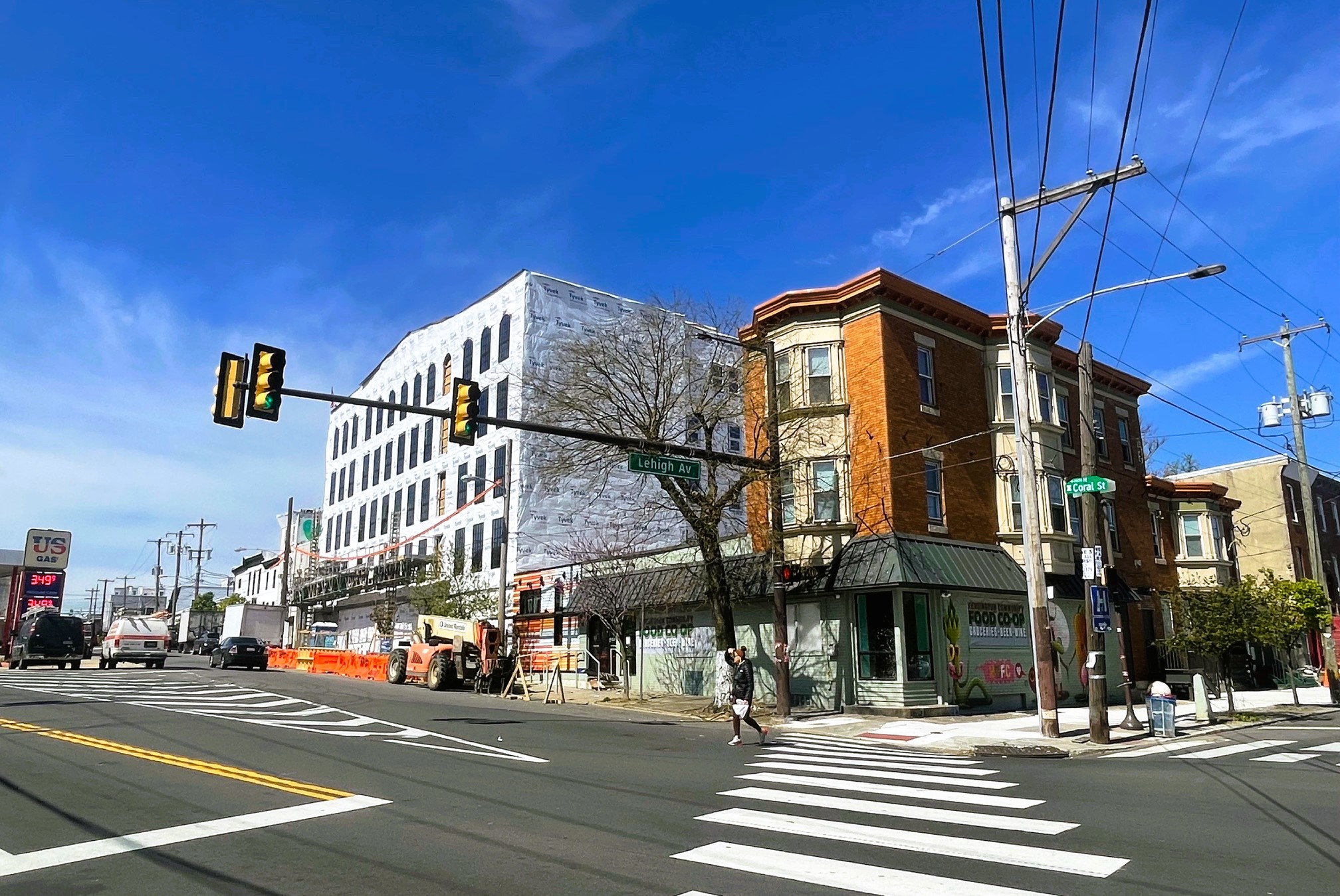 This mixed-use building is slated to rise five stories, with ground-floor commercial and six bicycle spaces below 19 residential units on floors two through five. A rooftop deck will be included for residents, along with a yard along Lehigh Ave. to provide some green space. No car parking is to be included for this CMX-2.5 zoned property, which has an industrial-inspired design, with large windows on the ground level commercial portion and red brick to the building’s apex. The commercial space will help anchor the intersection, which is going through just a few changes here and there.