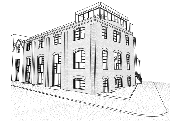 On the building, you can see there's a sign for Red Oak Builders. So we looked them up to get the scoop on the project, since the permits for the project confused the heck out of us. According to the developers, the project is taking the church's former parish house and converting it into five new luxury homes. The project will be called the Parish House, 'natch. They're adding a set back third story, they'll be reusing some of the materials from the inside of the old building, and the divisions between the homes will correspond to the existing window columns. All the windows will be replaced, of course. Here, check out this rendering from Toner Architects.