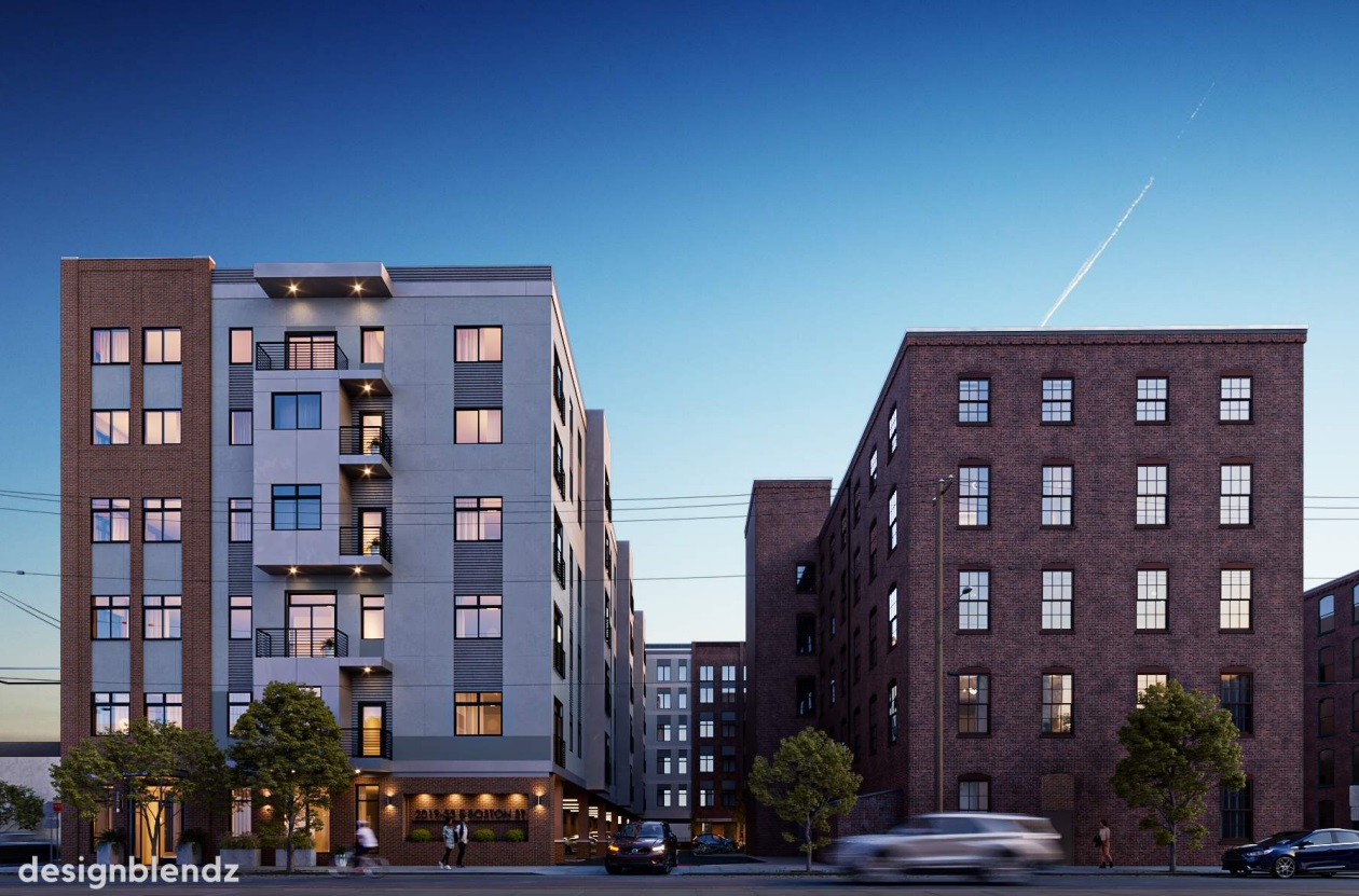 Back in August, we stopped by several busy blocks in East Kensington near the York-Dauphin Station where 600+ units are in various stages of construction between a mix of adaptive reuse and ground-up projects. Just a few weeks later, we found ourselves back in the area to check out a proposal at 2019-53 E. Boston St. which would incorporate the long-running Viking Mill artist studios with new construction to take the place of the to-be-demolished home of Urban Axes.