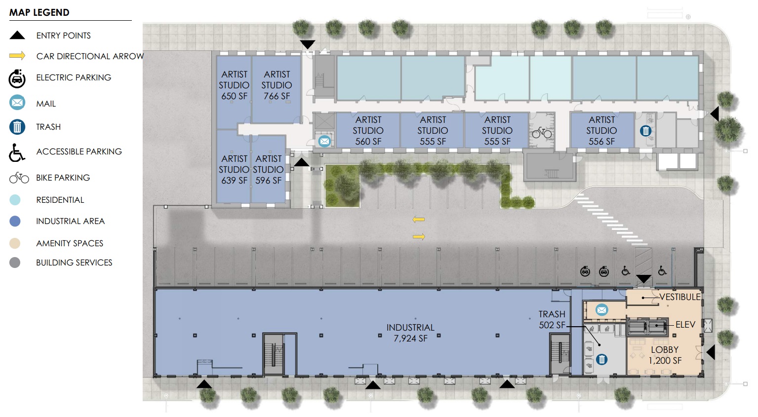 We would wager that the CDR committee will have some feedback on the current plans to more closely reflect the origins of the property, but overall we’re quite pleased with the outcome here. Studio space will remain and hopefully some of those who had to move can find their way back here in the future. The scale and density fit in nicely with the surrounding area, including the area immediately next door on the northwest portion of the block. At this former auto body shop, 108 units with more ground floor studio space will rise. The design from T + Associates will integrate nicely from a size perspective with its future neighbor.