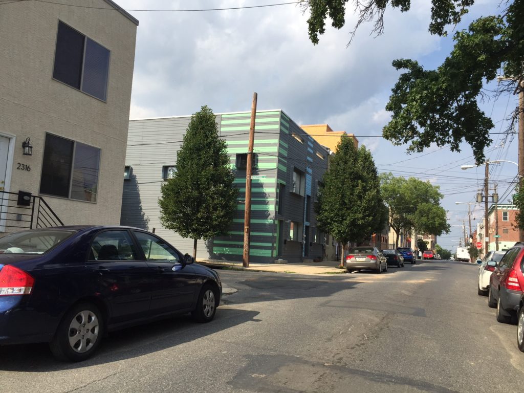 This project, whatever it is, will join a ton of other development nearby. Across the street are the two Passivhaus homes from Post Green. Around the corner is a row of homes built in the last year or two. And all up and down Amber Street, there are numerous new homes that have sprung up as East Kensington has become a neighborhood du jour. Whatever happens on the site of the former garage, it will probably blend in with the crowd.