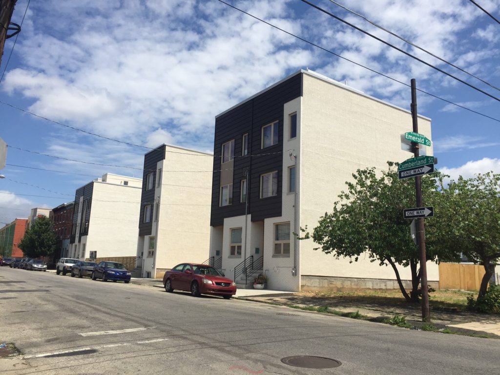 We’ve visited the 1900 block of E. Cumberland a couple times in the past, following along as new construction has filled in vacancy on the block. In the fall of 2015, we noted a pair of new homes at 1908-10 E. Cumberland St., from Callahan Ward. About half a year later, those homes were finished and two more homes were under construction across the street. As you can imagine, the block has seen some additional progress in the year since our last visit.