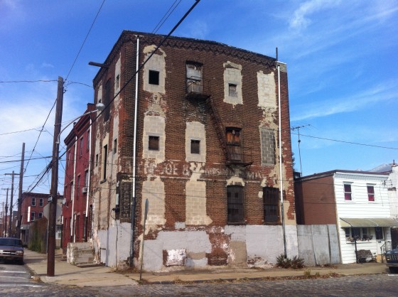 Permits to renovate the three buildings first pulled in 2008 were renewed this summer. All three are owned by the Fishtown Redevelopment Authority, which appears to have purchased the properties together for $105K in April 2008, and filed for permits to renovate the properties soon after. According to a former resident at 2130 Hagert St., a lawyer who posted the information on Fishtown.us, all three properties were new renovations when he lived there in 2008. Next door, at 2134 Hagert St., “Home Depot boxes served as windows,” he wrote. When we passed by last month the boxes were gone but the home remained vacant.