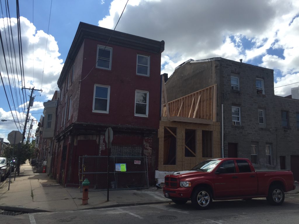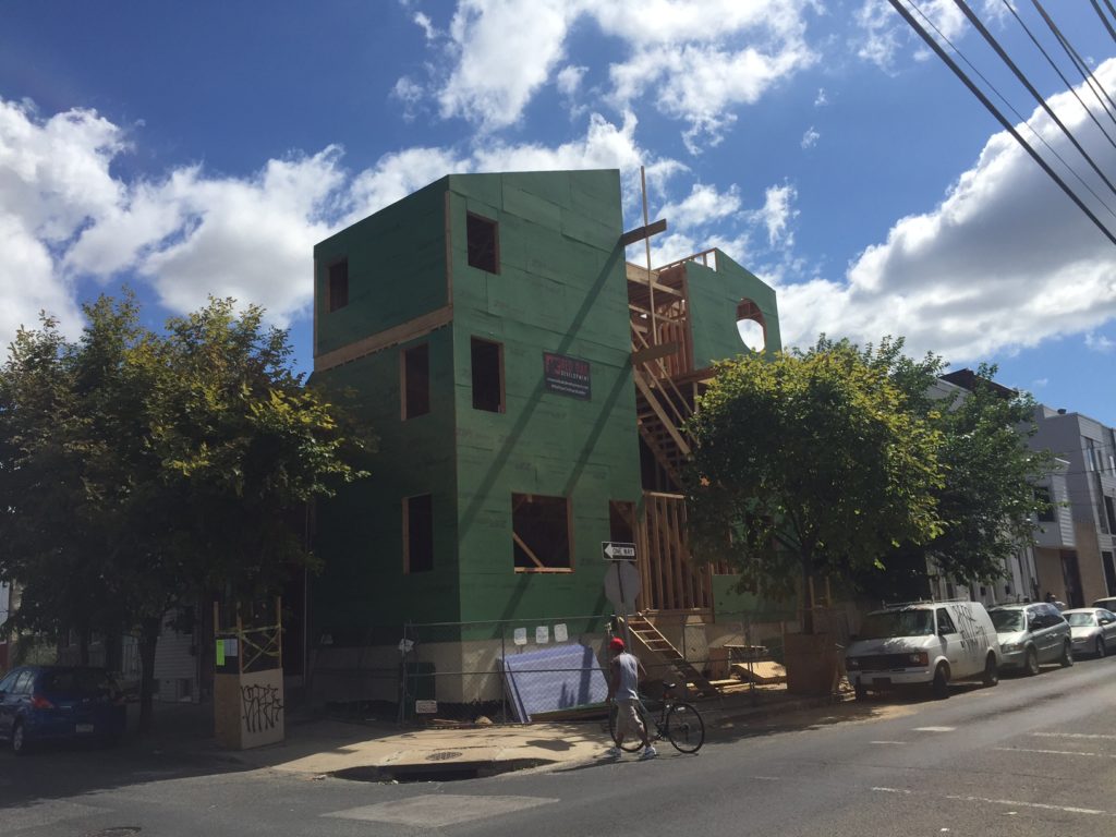 Checking in on these properties today, we see active construction at both addresses. A new home has sprouted at the corner of Emerald and E. York Streets, and from the looks of the construction so far, it might be one of those properties that will make a statement, architecturally. We expect a round window where you see a circular cutout on the third floor, which for some reason always gives us a nautical vibe. Given the sea of vacant land nearby, we may be onto something. At 2337 Emerald St., framing only just got started, so we have no idea what to expect but the odds are it'll be some standard infill construction.