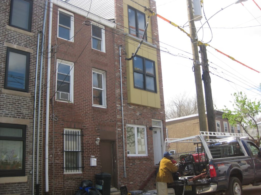 Right around Thanksgiving, we told you about plans to demolish a green house in East Kensington and construct a new home in its place. We also learned of plans to build two more homes next door, replacing long vacant lots. The other day, we passed by 2072-76 E. Susquehanna Ave. and found the old home gone and two new foundations in its place. The third foundation will surely come soon enough. Additionally, we saw a skinny new construction home that wasn't here before.