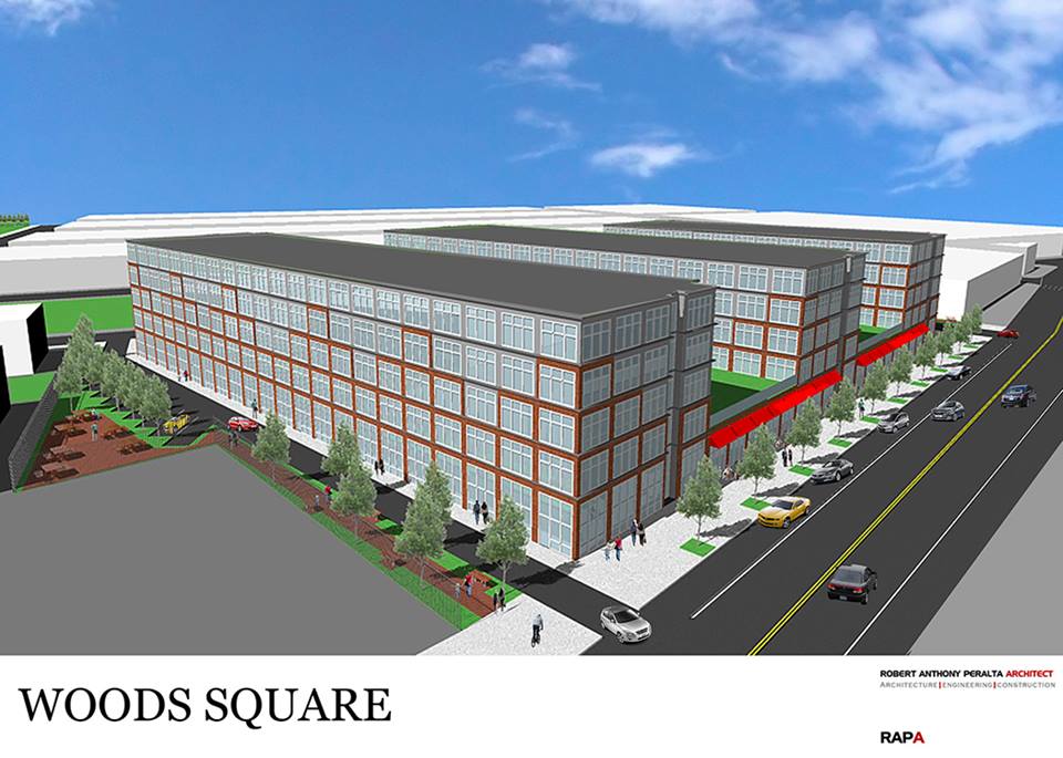 Developers are now looking to redevelop this huge parcel, and presented their first thoughts to the community last night. The project is as large as you'd expect for a parcel this size, with plans calling for 178 apartments, 80 parking spots, and ground-floor retail. The East Kensington Neighbors Association Facebook page posted a rendering of the project which has been dubbed Woods Square.