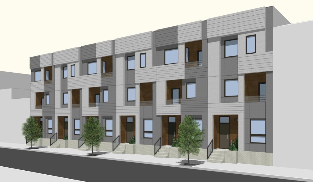 The property goes all the way back to Boston Street, which is where some heavy equipment is currently digging a hole. The first phase will include five homes that front Boston Street, and all of those homes are apparently already under agreement. The second phase will mean six homes on York Street priced around $380K which will look like this rendering from KJO Architecture.