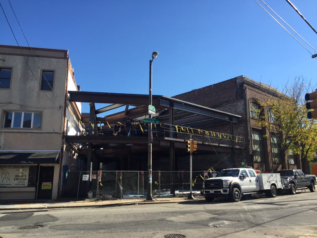 At some point in the last month or so, construction (finally!) resumed. Two stories of the new building have now been framed out in steel and from the looks of the first two floors, this building will be quite a bit taller than its next door neighbors. The first floor, especially, will have some amazing ceiling heights. We wonder what will end up taking over the retail space.