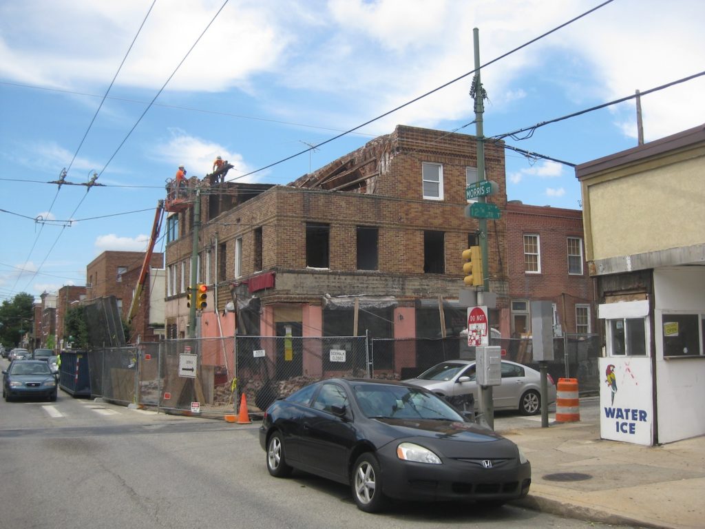 All of this, of course, is an extended means of compensating for our misguided post from almost an entire year ago titled 'Look for the Old Artisan Boulanger Building to Come Down Soon.' If by soon we meant eleven months later, we were totally on point. Yes folks, the former croissant shop at 1646-48 S. 12th St. is finally getting demolished.
