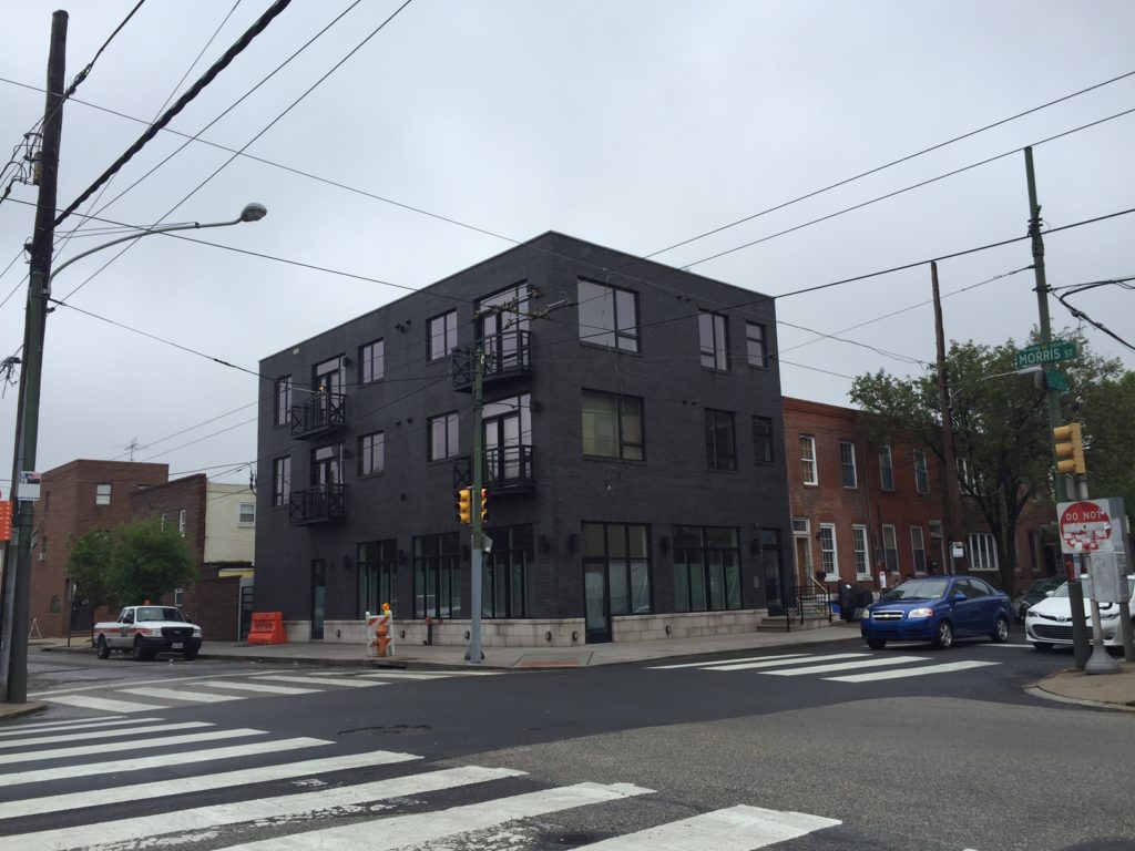 Looking to the north, a new building has arrived on the northwest corner of 12th & Morris, bringing to fruition a long-planned project. Originally, chef Chris Scarduzio was planning a casual Italian restaurant in a modern looking new building, but Scarduzio walked away from the project and the design of the building got a little less exciting. Still, MSC Retail has the 1,800 sqft restaurant space listed for as available for lease.