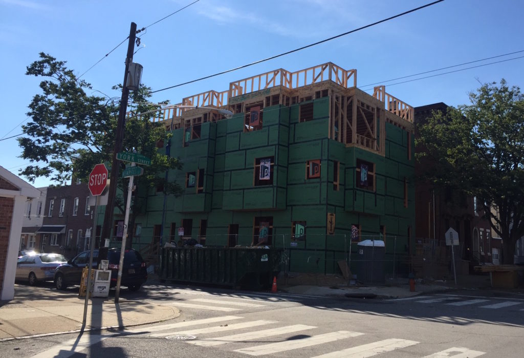 We spied construction at 2318 E. York St. a couple of months back but didn't understand what the project entailed. A commenter quickly straightened us out, explaining that it was a nine unit condo development from Postgreen Homes called Arbor House. For those unfamiliar with Postgreen, they've done numerous projects in Fishtown, East Kensington, and South Kensington over the last few years including the $100K House and Awesometown. Not only are their projects typically environmentally conscious, but they're consistently building some of the most unique looking new construction in the neighborhood.