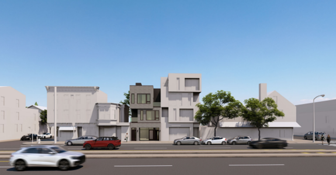 While Frankford Avenue gets all the love, East Girard Avenue has also experienced a pretty dramatic transformation over the last decade plus. Historically, this corridor has been dominated by three-story mixed-use buildings, offering small neighborhood commercial space and limited density above. We’ve seen several projects consolidate multiple properties, creating larger commercial spaces and greater density. But we’ve also seen some smaller scale redevelopment, like the 2019 construction of a small mixed-use building at 331-33 E. Girard Ave., which replaced an interesting but inefficient triangular building. This playful design from KJO Architecture evokes slightly offset shipping containers stacked on top of each other.