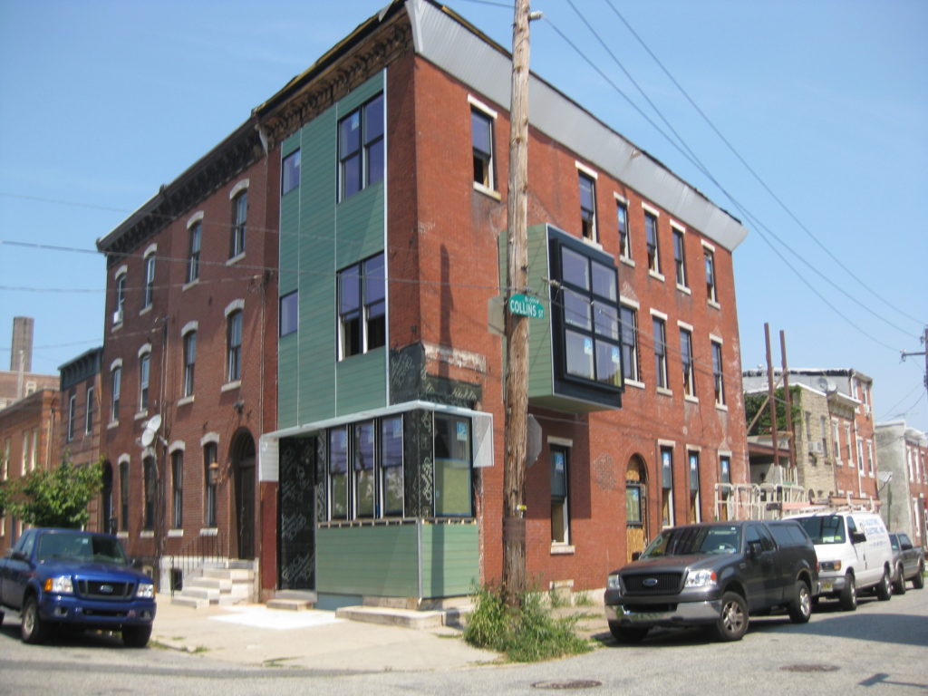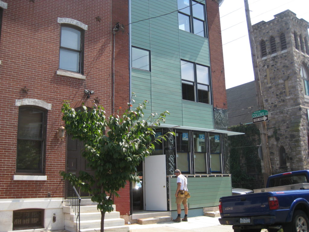 The building was purchased by its current owners in 2011 as a five-unit property that was in bad shape. Last October, they went before East Kensington Neighbors Association with a plan to rehab the building into three apartment units, ostensibly repairing the building along the way. As you can see, it’s looking mighty different these days.