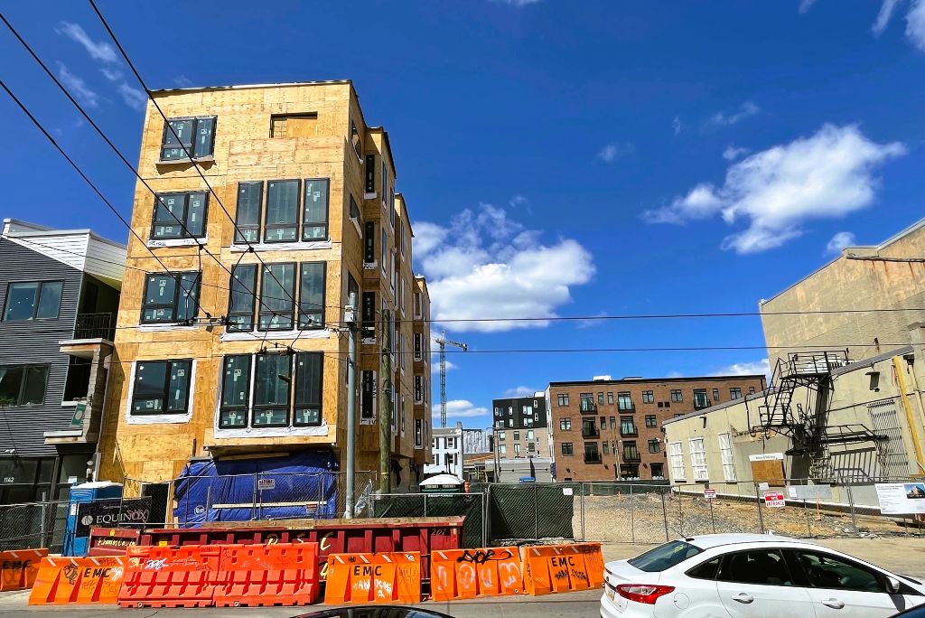 At 1148 Frankford Ave., more or less across the street, the former Kensington National Bank Building is getting refreshed along with a wrap-around addition from Oombra Architects. Just a few steps down Frankford Avenue, the Kore-designed Frankford Collective is progressing nicely. These projects will change this intersection even more, bringing 60 apartment units, a dozen hotel rooms, and multiple commercial spaces.
