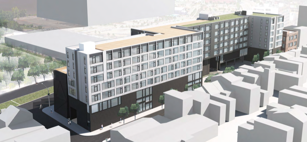 Yesterday, we told you about a community meeting at which developers presented plans for the renovation of the Edward Corner building at 1100 N. Delaware Ave. and the construction of a new mixed-use building next door, and we told you that we'd provide renderings as soon as the CDR site updated its listings for the November meeting. Maybe half an hour later, the City updated the CDR site. Nice job, guys.
