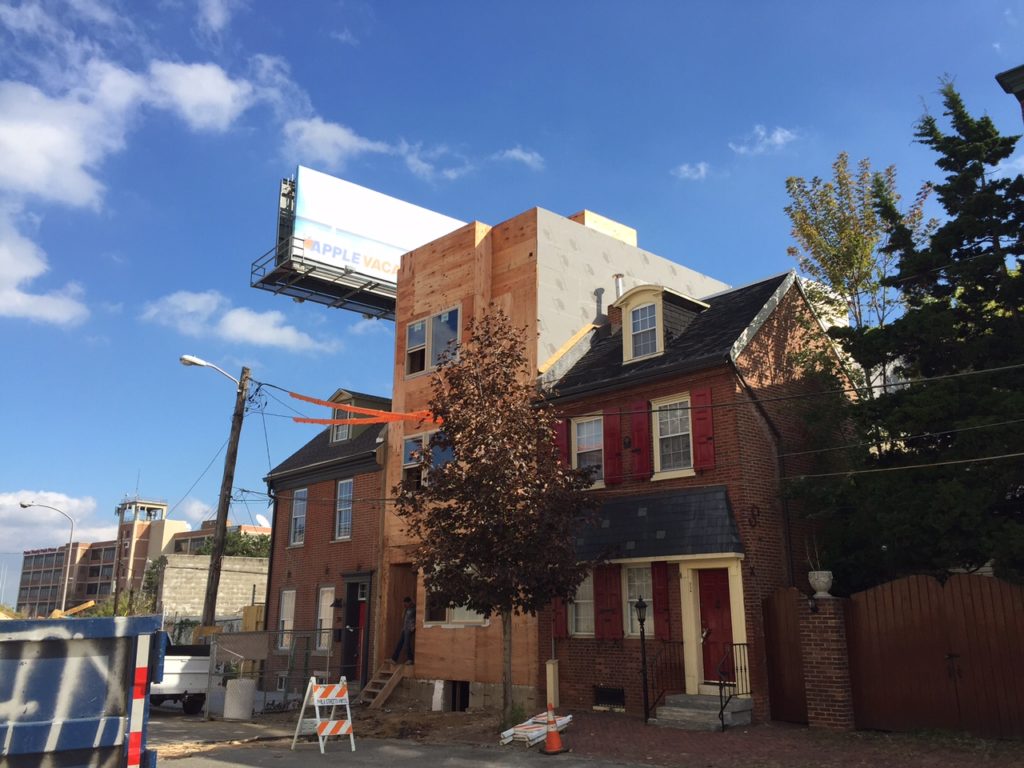 Though you can see four homes in the photo above, this is actually a six home project. There's another home coming soon at the lot with the pile of dirt and construction equipment. And a sixth home is progressing on Richmond Street. While the homes on Allen Street have views of the park and the waterfront (and Johnny's Hots Famous Hot Sausage), the home on Richmond Street has views of the highway. And all the homes will have views of the billboard whose base sits nearby.