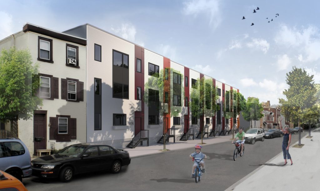 They broke ground two weeks ago on the site located on the 400 block of Moyer Street. The project will bring 14 townhomes in two phases. The homes will seek LEED Platinum certification and include sustainable elements like improved rainwater collection abilities, and solar thermal capacities. Phase 1 will include 8 townhomes on the 400 block of Moyer St., followed by a Phase 2 that builds six more homes with Thompson Street addresses. So far, six of the homes have sold, including four of the homes marked for affordable housing. Pre-sale of homes before building is an element Postgreen Homes uses to leverage with banks when developing new projects. About five years ago, after the initial partner failed to get funding and left, Postgreen partnered with NKCDC to continue the vision.